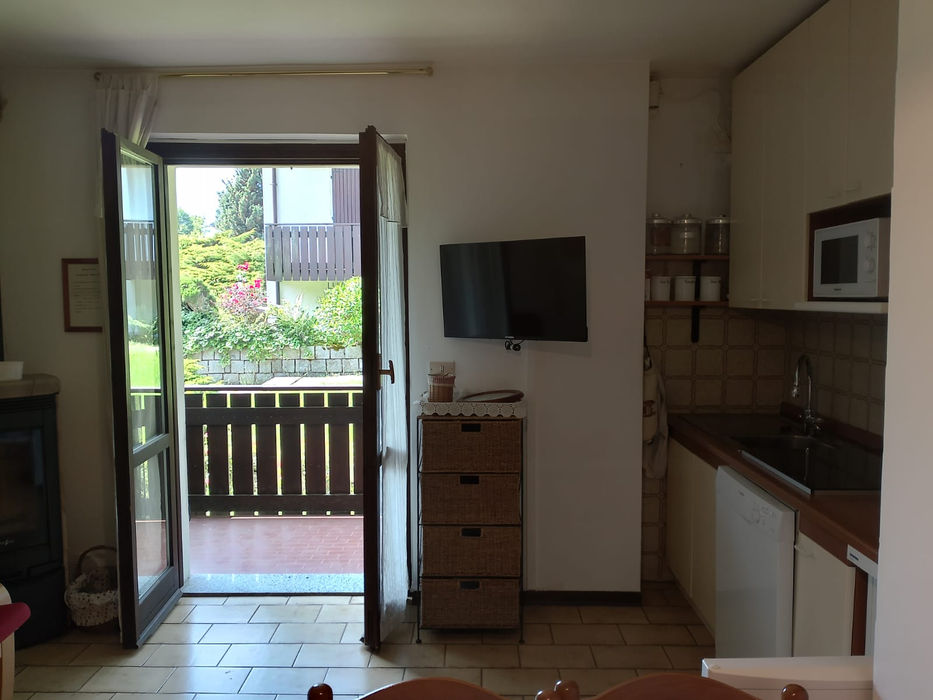 L' appartamento è composto da un ampia zona giorno con reparto cottura dotato di lavastoviglie, piano cottura a induzione, forno elettrico, macchina del caffe' e bollitore, una comoda stufa a pellet puo' essere regolata dall' ospite per avere un ambiente caldo e confortevole.